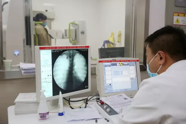 接受崗前體檢人員先后在外科、內(nèi)科、耳鼻喉科、眼科、心電室、放射科進(jìn)行了全面規(guī)范的身體檢查。